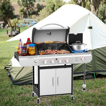 Construction durable en acier inoxydable au gaz propane haute performance 4 brûleurs Allumage piézo-électrique Portable pratique pour 5 personnes