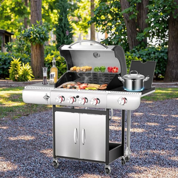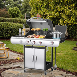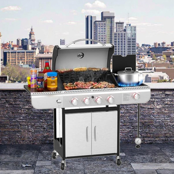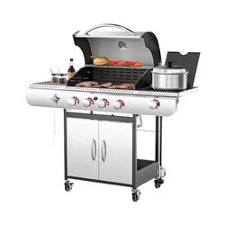 Barbecue au gaz propane à 4 brûleurs en acier inoxydable pour les fêtes en plein air Machine à barbecue avec four et gril pour la cuisine en plein air