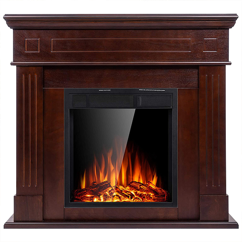 Camino Elettrico con Cassa di Combustione, Cornice in Legno e Mensola Marrone, con Telecomando, per Garage e Uso Domestico, Vendita Diretta dalla Fabbrica